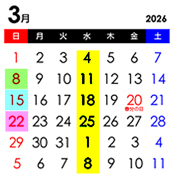 3月の営業カレンダー